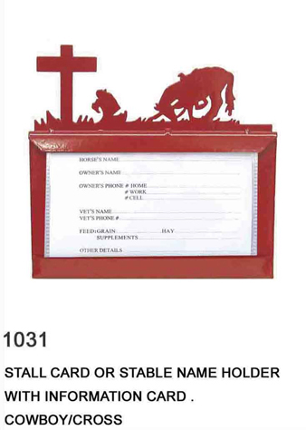 STALL CARD OR STABLE NAME HOLD WITH INFORMATION CARD