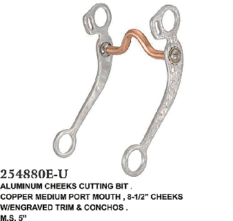 COPPER MEDIUM PORT MOUTH, 8-1/2" CHEEKS W/ENGRAVED TRIM & CONCHOS. M.S.5"